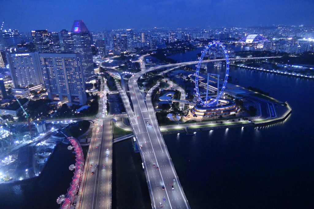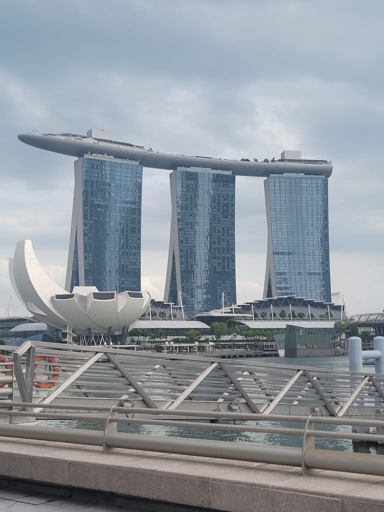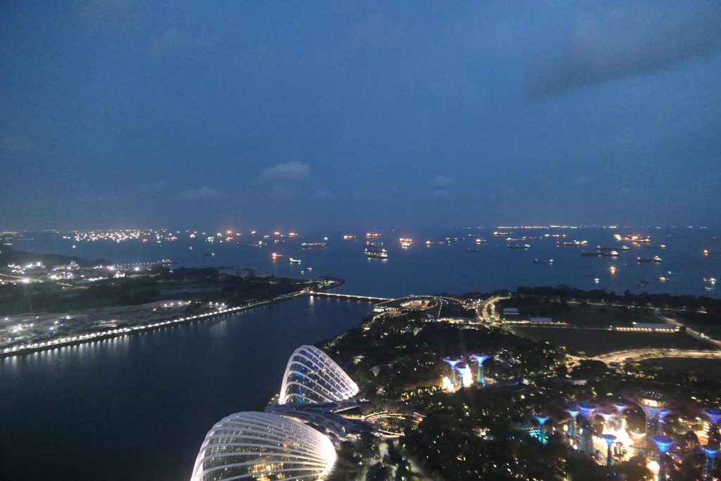 Så er det tid til den længe ventede tur til Singapore. Vi står tidligt op for at nå bussen klokken 6. Efter et par fyldte busture og travl paskontroller er vi ovre på Singaporesiden og kan tage metroen videre. Singapore er vild og vi forsøger at nå en masse uden at stresse. Vi besøger både et buddhistisk tempel og elektronik-templet Sim Lim Square hvor man kan købe alt der kan sættes strøm til. Vi tager også op på toppen af Marina Bay Sands som du måske kender som de der 3 højhuse med noget der ligner et skib på toppen. Et helt overdrevet stykke byggeri men oppe på toppen har man et fantastisk udsyn til den travle og storslåede by på den ene side og bugten med 100-vis af skibe for anker der venter på at skulle ind til terminalen eller videre gennem Malacca-strædet.