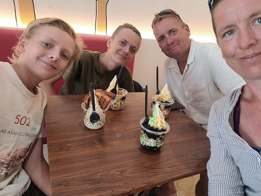 Vi ligger nu i en marina med 220 V og vand og direkte landgang for første gang siden Darwin. Og selvom vi virkelig nyder det når vi ligger for anker så er det også rart en gang imellem at få ladet batterierne op – bogstaveligt og billedligt talt. I supermarkedet kan man købe næsten alt, priserne er yderst rimelige og så er der adgang til en hotel-pool på 18. etage. Al den luksus må opvejes lidt, så vi tager også et par arbejdsdage på båden. Den trænger blandt andet til lidt vask og polering. Og så er der ankerspillet: det stod af da vi skulle have ankeret op af Kumais mudder og er næsten uundværligt, så det skal laves. Nikolaj får det afmonteret og vi må erkende at der skal specialister med specialværktøj til for at få det til at spille igen. Vi får fat på sådan en specialist og han kommer og henter de dele der skal ordnes.