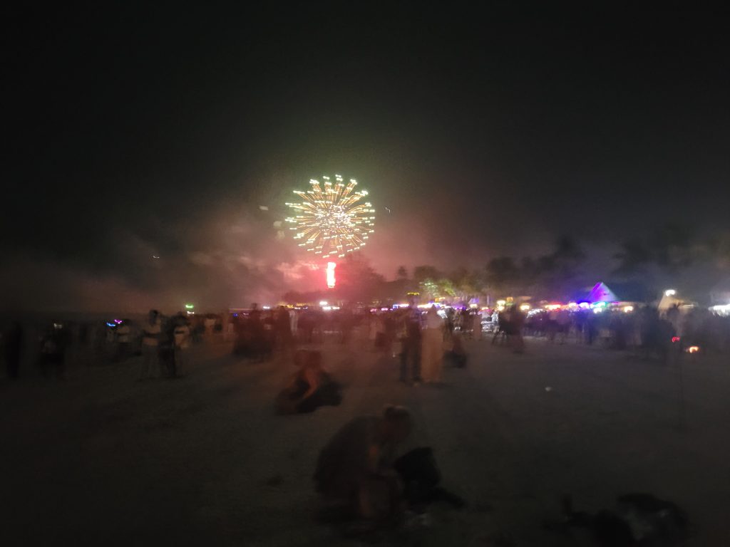 På grund af ankerspils-situationen må vi blive til nytår, men her er også skønt og en fest på stranden ved Cenang.