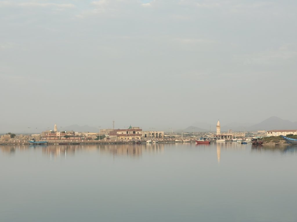 i den nye del af Suakin ligger simple huse bygget af sten og blik side om side med brokker fra sammenfaldne huse der var bygget af sten og blik. Vi oplever mest venlighed og det hele kulminerer med afslutningen af Ramadanen hvor alle er på gaden i deres pæneste tøj. Vi er inde på land for at gå en tur og tage lidt billeder. Men vi kan ikke gå 10 meter før en ny gruppe folk vil have taget billeder af sig selv eller sammen med os og også gerne vil have dem sendt på Whatsapp. De tager også billeder og små film sammen med os og sætter hjerter og lækre filtre på og sender dem rundt til familie og venner. Super hyggeligt og livsbekræftende og lidt overvældende.