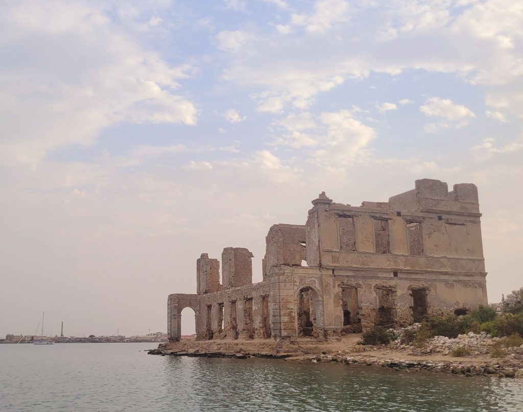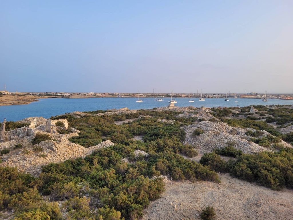Men lyset bryder frem uden drama og vi sætter kursen mod Suakin, forbi fritgående dromedarer i sand-landskabet, helt ind forbi “Gamle Suakin” som er en ruinhob og lægger anker i den mest beskyttede bugt med Suakin rundt om os.