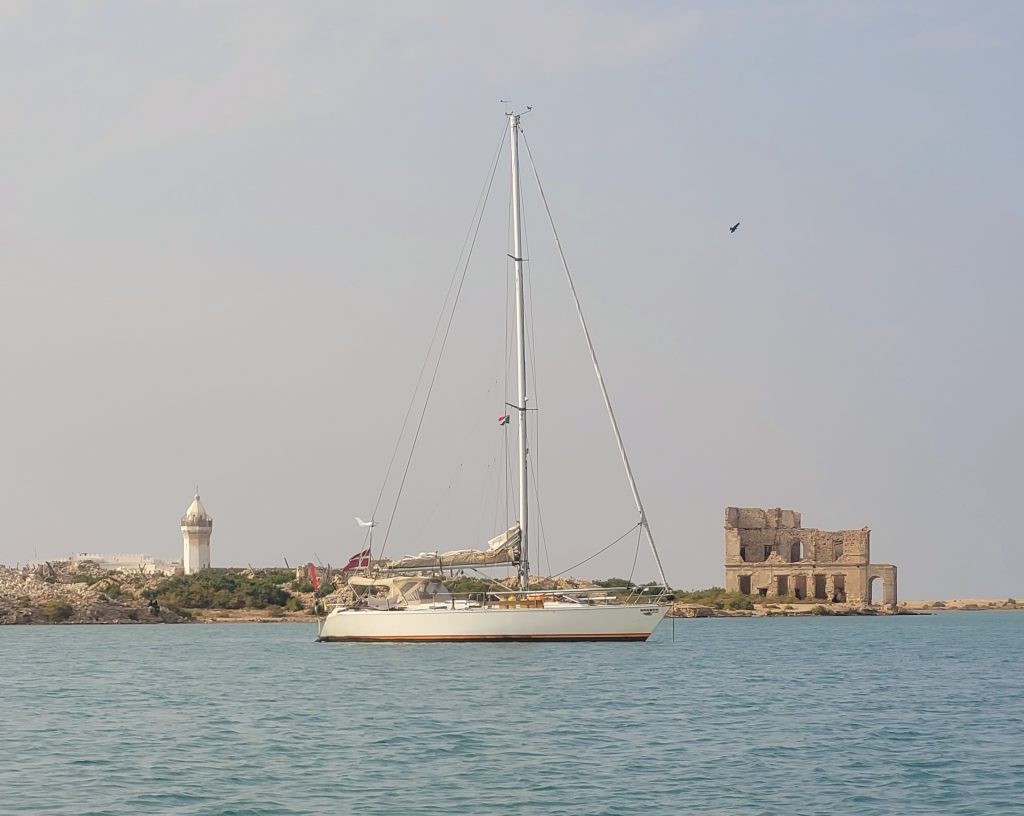 Turen går nordpå gennem det smalle stræde mellem Yemen og Djibouti – Bab el Mandeb. Der har houthierne tidligere skudt mod skibstrafikken. Ikke mod sejlskibe, men de kan jo ramme ved en fejl. Det er de heldigvis holdt op med da vi beslutter denne rute. Men så begynder USA at bombe i Iran og det får konsekvenser i de omkringliggende lande og i Hormuz Strædet som i praksis bliver lukket på grund af krigen så nu spekulerer vi på om også Bab el Mandeb bliver berørt. Hvis strædet bliver lukket er vores muligheder for at komme hjem i år noget besværlige, så vi beslutter at tage videre hurtigst muligt.