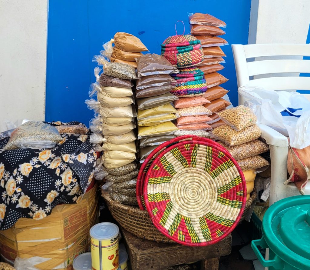 Vi besøger det dyre indkøbscenter “Hyper” hvor man kan købe dyre mærkevarer og luksusprodukter. Vi nøjes med lidt enkle madvarer og et simkort så vi kan komme lidt på internettet. Senere på dagen går vi gennem Rue d Ethipoe i midtbyen hvor plasticskraldet hober sig op i den u-asfalterede gade mens gadesælgere og småbutikker sælger billige kopi-sko, tøj, billig elektronik og andet som hurtigt bliver til skrald og vil hobe sig op i gaderne.