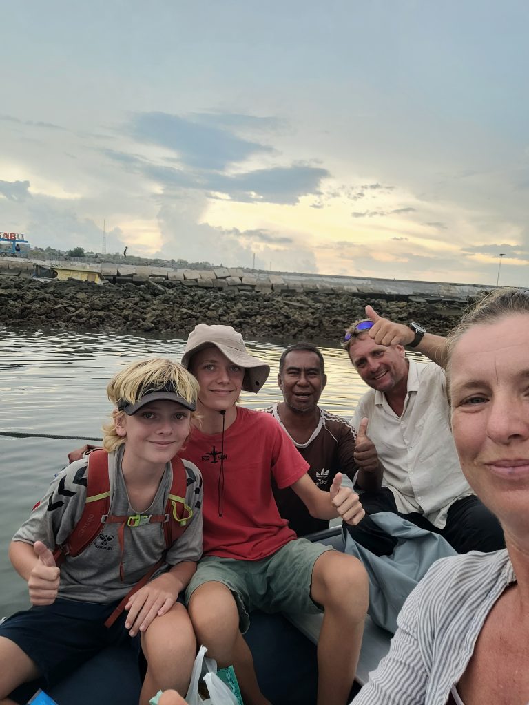 Søndag aften sejler vi ind til selve Kupang og lægger anker. Vi går ikke i land men sidder på båden og nyder byens lys og 1000-vis af knallerter, spændte på hvordan Indonesien bliver.