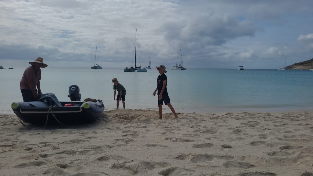 i modsætning til Stillehavet hvor vi hele tiden prøvede at undgå for hård vind, så må vi nu se frem til meget svage vinde så langt vejrudsigterne rækker. Så vi tager afsted og forbereder os på at måtte køre en del for motor. Først får vi dog 2 dage med let modvind som gør det mjligt for os at sejle for sejl og komme fremad omend langsomt da vi må krydse. Så slipper vinden desværre op og 2,5 dages motorsejlads senere kan vi lægge anker i mørke ved øen Roti. Det er natten til lørdag og vi kan først checke ind i Kupang om mandagen. Så vi nyder et par stille dage for anker i klart vand inden vi skal til byen hvor det skulle være mere beskidt. En indonesisk familie kommer på besøg med nogle kokosnødder. De vil gerne se vores båd. Ellers er der bare ro og fred.