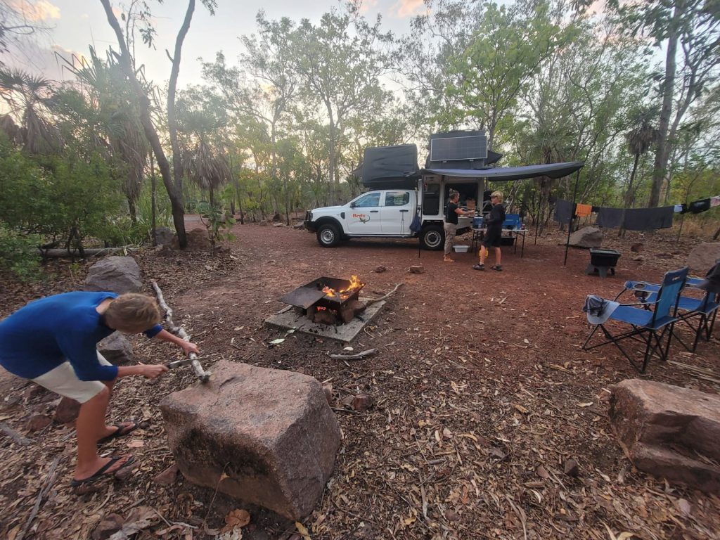 Mens vi venter på reservedele til autopiloten lejer vi en 4-hjulstrækker med 2 tagtelte og kører til Litchfield Nationalpark. Der er stor begejstring over udstyret blandt besætningen og Litchfield er også fin 😉 Det er overvældende natur Australien kan byde på. Vi bader i kølige vandfalds-søer, laver bål, kører gennem vand, ser meter-høje termit-boer og klippeformationer der ligner forladte byer. Vi ser også edderkopper så store som te-kopper, kæmpe flagermus, kænguruer og knælere og 1 million fluer.